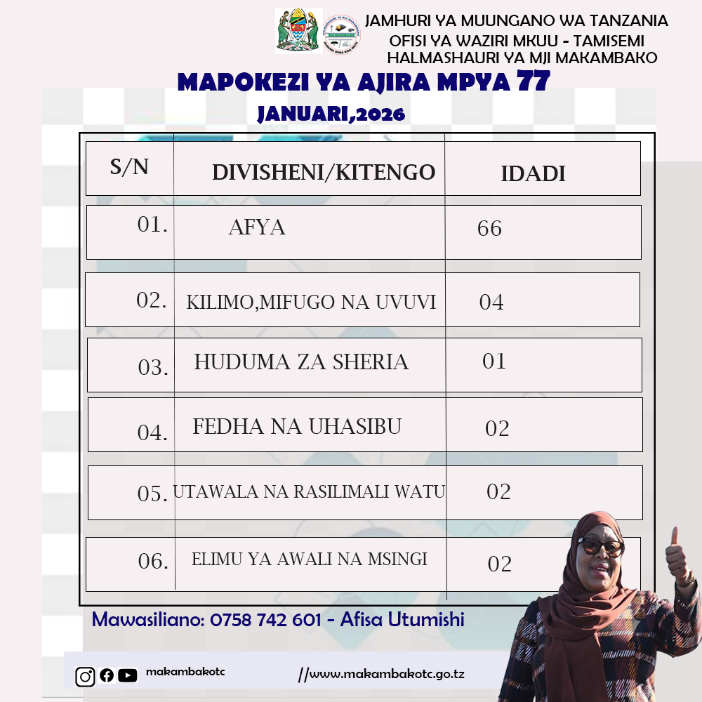 Mapokezi ya ajira mpya januari 2026