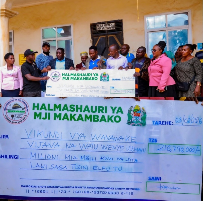 Mwenyekiti wa Halmashauri ya Mji Makambako Mhe.Salum Mlumbe amekabidhi hundi yenye thamani ya Mil.216.7 kwa vikundi 19 vya wanawake , Vijana na watu wenye Ulemavu ikiwa ni mikopo ya asilimia kumi inayotolewa na Halmashauri ya Mji Makambako.