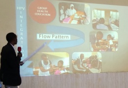 Mwezeshaji katika semina ya Saratani ya Mlango wa kizazi akieleza wajumbe ni kwa namna gani Chanjo ya saratani ilivyoanza kufanya kazi :Chanjo itatolewa na watumishi wa vituo vya kutolea ghudum...